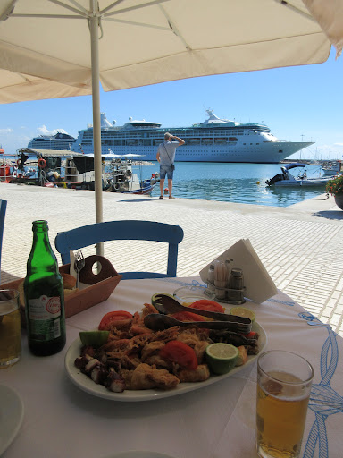 After strolling around small but charming Katakolo we were a bit hungry. There are several options by the sea. This one had ok reviews, a good number of crew members from the cruise (always a good sign), a nice view, interesting menu and....some free tables, one right at front with good views (they have a huge amounts of tables).