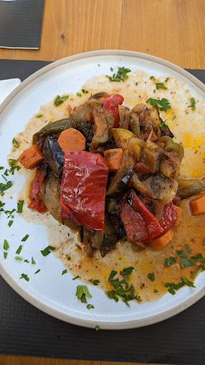 Unfortunately, they didn't have vegetarian options despite the sign at the entrance saying otherwise. But the chef came up with some options and I ate a sort of Greek ratatouille that was good. My boyfriend was very pleased with his food, the fish had an interesting smoky flavour. They gave us some bread with olive oil that was delicious. Fair prices! I...