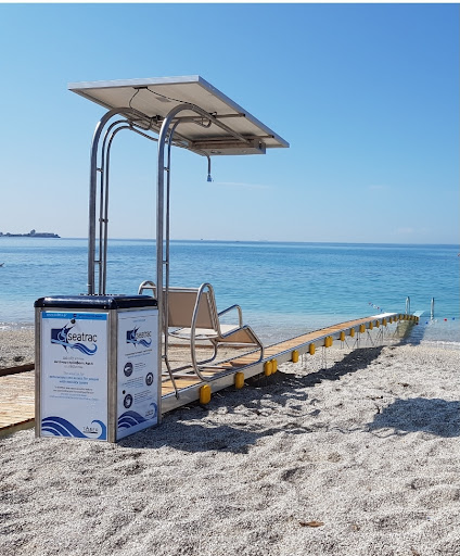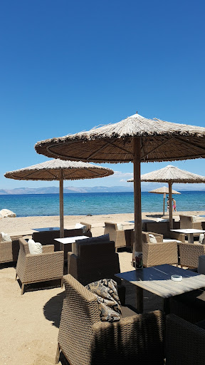 Read moreThe large loungers in the front row are €5 a day, but you can sit anywhere else for free and as long as you like. We like to order the famous coffee frappe. Or order a toasted sandwich after a swim. The beach is sandy and accessible for swimming. There are toilets, a shower and a chair track for the disabled to get into the sea. Very conveniently situated to the side of...