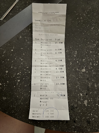 bad experience really. I've ordered the Cream of white fish roe salad With crispy tortillas and the waiter told me I needed to order bread with it (with a charge). I said "why? and the tortillas?". Well, he was right, it was a big bowl of fish cream with 4 small tortillas. It was extremely salty, so I only finished the 4 tortillas and left all there. No intention to make a fuss, just told the waiter it was salty and he said "did you try without the tortillas?". Well, maybe it was less salty, but the dish is cream and tortillas, the combination needs to work, it can't be that salty! I then had the SeaBream and it was good. I was feeling still hungry because I couldn't eat the starter so I've ordered fried squid. They were ok, but lacked taste and quite oily. Couldn't finish that either, too heavy. Again, didn't want to say anything cause he had already make me feel bad the first time: "all fine?", "yes ok", "you don't seem convinced..", "they were ok but seemed frozen and were a bit oily", "well it's fried.. maybe you should have ordered something grilled". AHAHAHAH, like it's not the billionth time I order fried calamari! I said "sorry, maybe you think I'm that kind of customer but I assure you I'm not". I'm definitely not. Paid the bill and left tips (despite I hadn't eaten the starter and was forced to order a second main.. no discount, all in the bill). I was probably unlucky but not sure why they have such a high rate really, food was average and wine expensive (and obviously the waiter didn't have the...