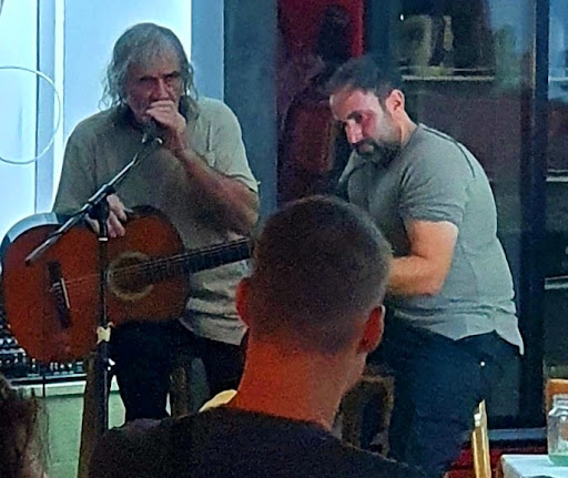We had read about him giving live performances but expected classic bouzouki music rather than what we got; whic8h was a truly soulful performance by a duo lead by Andreas on guitar accompanied by a very talented man on bouzouki. I do not speak more than 10 words of the Greek language and understand fewer but was even so utterly captivated by Andreas' husky, unique voice as he spun wondrous tales the meaning of which I could only begin to guess at. No matter though - true blues speaks to the soul without words and I felt what brother Andreas was preaching.