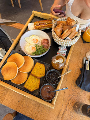 The pancakes melted in our mouths, the delicious jam, the honey, and the bread that reminded us of a colorful infinity of tasteā¦