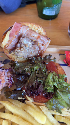 We wait for about 20 minutes before our drinks come out, a bottle of Coca Cola and two bottles of sparkling water. Then about 30 minutes later two of three people in our group gets their food and we were thinking that they probably just couldn’t carry it all at the same time but no. They came back after another 10 minutes saying that the burgers will be done ”right away” and that’s after about an hour of waiting. We ordered at 13:22 and it was about 14:20 when she said that.