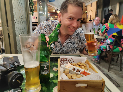We had a really nice lunch. When we arived we had a fresh juice from another store with us. The really friendly waittress, Dora, offered to add new ice to cool the drinks even if they weren't their drinks. As for food the two of us shared the house salad and burger. Which was a really good combination. The burger was delicious juicy meat with a good combination of sauces. It is a burger that definitely will still your hunger. When shared with the salad it makes a filling lunch that gives new energy to explore the town. The staff really knows how to please their customer's, but will also help the lost tourists looking for the harbour which is just around the corner ;) We're hoping we can plan our trip that we can eat here again tomorrow to try the supposedly even more...