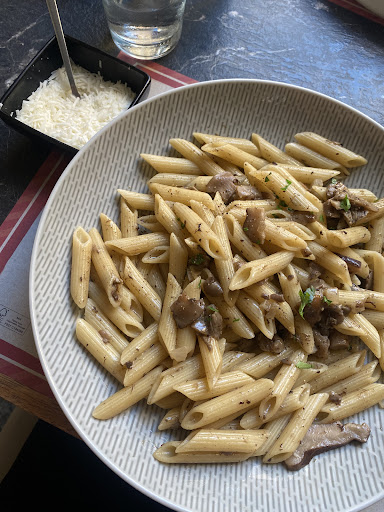 Read moreNice truffle and ok shrimp pasta. Both a bit tasteless but can make up for it with salt, pepper and cheese from beside. Kind staff but not paying much attention to the tables and we had to go up and ask for more water and our check. The location is great, no traffic or much sound, cozy street that’s not crowded. Very nice interior and plates as well. Fair prices for the once again huge portions. Could recommend a visit but personally would not go...