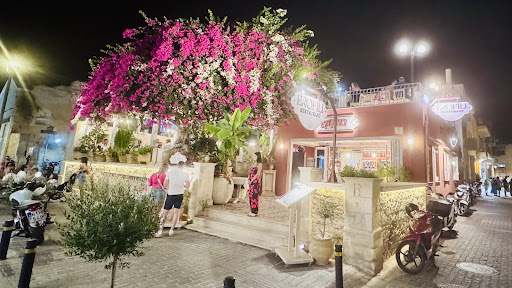 The restaurant offers a mix of Greek and international dishes in a beautifully designed space. The interior is impressive, with stylish décor and plenty of flowers that create a vibrant and welcoming atmosphere. The multi-level layout and outdoor terrace make it an attractive spot, especially for enjoying a drink.