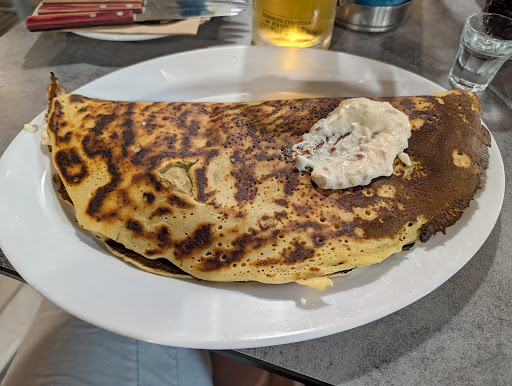 We had dinner here and loved it. Their savory pancakes are insanely good (except for the "healthy" one) but my god the portions are ridiculously big. We were all hungry and none of us were able to eat more than half of our portions. We took the leftovers to go and had them on the beach the next day, but I doubt many people do, so I dread to imagine the amount of wasted food generated here, so -1 star for this. Even 60% of the portion would have been more than enough for anyone and I would've been happy to pay the same amount for it. I didn't think I'd ever say this, but please, make the portions a smaller.