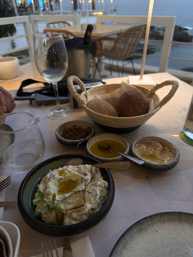 We visited this restaurant after seeing many positive reviews online, and to be fair, the overall reputation seemed justified at first. The atmosphere was nice, and some of the dishes were truly enjoyable — for example, the lobster pasta was excellent, perfectly cooked, and large enough to share between two people. We also tried their Santorini fava with octopus, salad, wine, and a dish with aubergine and feta, all of which were decent.