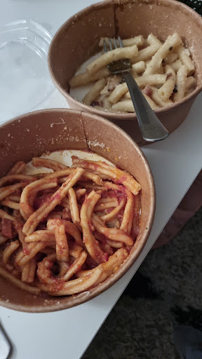Read moreI admit, I ordered a takeout around midnight. I ordered the carbonara originale or something like that, and I have never in my life gotten such a sad meal. There was probably around 4 grams of 'pancetta(?)' and it really was just a white, tasteless pasta branded as carbonara. Somewhere, an Italian is mourning. I was super hungry so it was still passable, but this cost more than 8 euros and really felt like a poor value for the money. Again, maybe it's my fault for ordering after midnight. Maybe it's their fault for staying open, serving food of this quality at this time. I think we're...