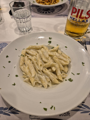 Now the long story. The only part of the dinner that went smoothly and quickly was greeting at the entrance and seating. We got the last small table in a completely stuffed restaurant and felt very lucky. That is, until we discovered that our table is under a very loud sound system and we could not hear a word from each other. The waiters hectically ran through the place. We felt sorry for them and also a little stressed ourselves. While we were waiting, several staff members found time to apologize for the delay, but never found time to take our order. A large group of guests from the table next to us simply left, tired of waiting, - and probably saved the rest of their evening. Finally, 40 minutes in, a waitress took our order. We had a view of the kitchen and were often startled by the sound of things dropping on the floor (even louder than the now-unbearable music) and the look of things literally bursting into flames well beyond the "flambe"-level. As we had been waiting for a little more than 1 hour, another waiter came to our table only to double-check if our order was taken correctly. It was not. We corrected him, just to get wrong drinks some minutes later. Straightening out the mistake took some more time and waving around. By then, the restaurant was already almost empty, so we could not explain to ourselves the continued chaos and delays. The only hope was that the food would justify the wait. It did not. The appetizer of stuffed grape leaves was plain bad. All pieces were of different size and shape, some were broken, as if someone quickly tried to figure out how to make them and then promptly served this experiment to us. The filling was massively overcooked and tasted like a greeting card from my future stomach ache. They definitely use this dish as a kitchen sink and do not do that gracefully, too. The dish of grilled octopus consisted of two tiny tentacles and several French fries. We suspected that it was a miscommunication, because we ordered the grilled octopus as a main dish but got an appetizer instead. Or the restaurant aspired to serve high cuisine, but only got the size of portions right so far. Anyway, the octopus later showed up in the bill as a main dish. The moussaka I got was beyond bad. I was already very hungry and it was already too late to go to another place, so I ate what I got. However, both its texture and taste were off. The iconic eggplant was replaced with overcooked zucchini slices, the meat was sparse and tasted funny, the disgusting white mass of the top layer was supposed to represent béchamel but failed miserably. The waiter that brought our bill patronisingly explained to me, why the moussaka tasted good and mild. Common, buddy, you cannot explain a bad taste away, not when you are surrounded by plenty of other restaurants, each of them serving their own perfected version of the same dish. As we looked close to berserk at the end of the evening, the waiter offered us a 10% discount on the entire bill. This, funny enough, also felt like a "schema", because the guests at the next tables were offered the same. I suppose, if a guest likes discounts and feels smart and unique when offered them, this trick can totally turn the bad impression around. Mind that the dish prices were still higher than average in the area, discount or not. I wish instead we could return the time that we spent there. And forget their interpretation of...