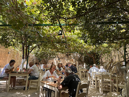 Stumbled upon this gem yesterday for a spot of lunch. It's a beautiful, peaceful restaurant in the midst of a host of tavernas offering traditional Cretan food. Unlike the other places which had the usual waiter standing there, trying to get you to come inside, there was no one beckoning you inside the Petra restaurant. We looked at the menu outside and were impressed by the variety of dishes and the fair price. We walked inside, through a simple but elegant interior and out into the main body of the restaurant- a stunning private courtyard of tables with an amazing canopy of vines laddened with grapes above. We were greeted by a very unassuming and genuinely attentive waiter who provided us with a litre bottle of water on the house. We ordered Spaghetti Carbonara, which was delicious and served in a very generous portion. It was so good I had to wipe up every last drop of Carbonara sauce with the bread we had purchased. We had two beers which were excellent and then were presented with a dessert of Water Melon, again, on the house. The quality of the surroundings, the service and the food were first class and fantastic value for money. A truly excellent place I would...
