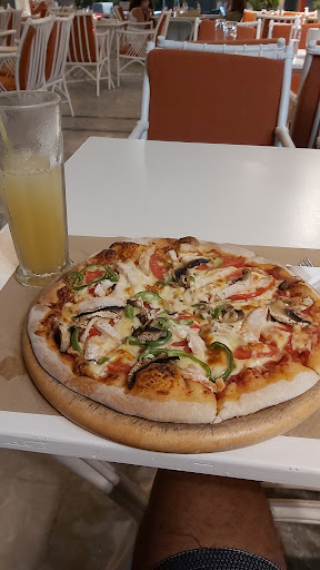 I have visited this restaurant.. there was a guy name LION who saw me looking at the menu and he was boasting about their restaurant have the best pizza ane it's naturally bake from wood and I won't regret their quality and taste of their food. He definitely knows hiw to speak, advertised and sell his marketing strategy to the customers lol. At first I was curious..but it was on my mind do I said to myself let me try a chicken pizza that Lion highly speaks and bragging about.he was so confident he even said to me "if it is not goof..I would definitely give you your money back.. but I know it will be tasty because you won't regret". So I bought myself a pizza and pineapple juice. I was so amazed of the presentation of the pizza, its looks and smell really good. So I said to myself "I hope it taste good. " I gave them.the Wow factor expression and I was ready for the taste.. it was so good the crust was nicely crispy outside and soft in the middle (perfect). I highly recommend that you guys go there and try there food.. oy yea it also smell good and their place is clean and comfortable close to the sea side. Trust me if Lion meets you just the way he speaks he would definitely attract you ans your taste bud tocome in and have some of their finest and quality special...