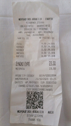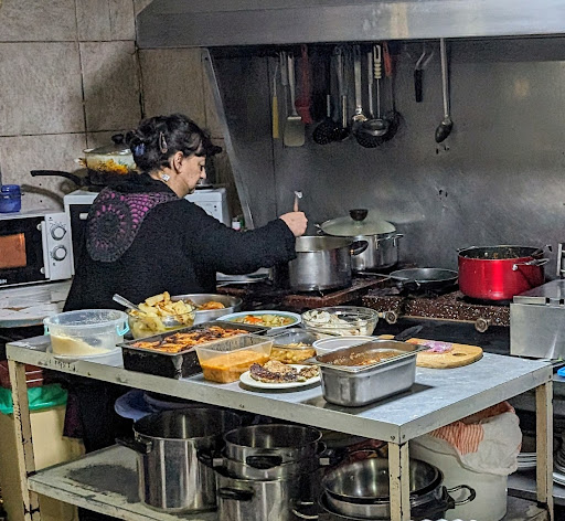 Read moreThis is a great place to eat. Stella and her staff are very warm and welcoming. The delicious, healthy, home-style food is lovingly prepared by Stella. There are printed menus at the tables but you go over to the counter of the kitchen to see what's actually being offered that day and to order. Both meat eaters and vegetarians can eat very well here. Stella put together great vegetarian combination plates for us that had some of all of the tasty vegetable dishes. On Mondays she makes a hearty delicious fish soup that is chock full of fish and vegetables. Her lentil soup is also good- we had that on a Tuesday but I don't know if she makes it every Tuesday. Good red and white house wine is available - €5 for a half liter or €2 a glass. There is also beer and ouzo of course. They give you complementary tangerines and raki which make for a nice finish to the meal. One of the two days we ate there they also offered coffee and cake on the house. You pay at the counter. They accept both cash or credit cards. They open early for breakfast but at least this time of the year...