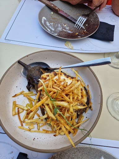 Read moreThe restaurant has a pleasant courtyard. We sat against the wall under a "bay leaf" tree (laurel). We started with Tsatziki and tarama which were both fresh and tasty. The waiter was happy to bring more bread. We then enjoyed the Cretan lamb ("tsigoriasti") with potatoes which was very tasty although probably only ⅓ of the meat was edible (the rest was bone and fat). The lamb was brought up before we'd finished the appetizers. We had to ask for the plates to be taken when we'd finished and again for the dessert menu but we'll put that down to the non-hurried approach to dining here. We were given yummy homemade orange cake with vanilla ice-cream...