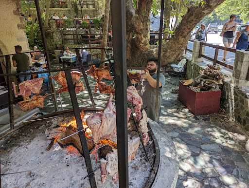 You might also be lucky enough to enjoy a watermelon that has been cooled in the waterfall, "kerasma", while kids can try and spot the live trout on show downstream (there are some really big ones!).