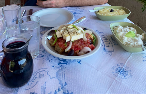 We went to this tavern as we were staying in the village , and it was some of the best nights we had of out holiday , the staff we exceptional, food fantastic and the wine was brilliant, we came back a second night for the Greek dancing and we had such a laugh. The lovely polish waitress was great on recommending , and we loved everything she suggested, the owner was very friendly too . Of If I could give it more then 5* I would Would definitely recommend . (It was soo good we even got a takeaway before my son went to the airport and that didn’t disappoint) The pork starter was great and we loved the zucchini flowers, and the huge piece of saganaki feta 😍.we had pudding sent with takeaway and raki free...