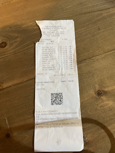 Read moreworst experience in Rhodes, after almost hour of waiting (restaurant was like 50% full and main server could at least say it takes longer) we got half-baked meal. Gyros mix plate for two: half baked french fries, chicken was over backed, gyros meat half backed. Kids menu - half backed french fries and over backed fish-fingers made from some dark type of fish - not as expected. We didnt eat that at all - main server said sorry but we had to pay full price event we barely touch it. Personaly i think that they forgot on us and just after 45mins when i asked what is going on they quickly tried to fix it. Even the restaurant looks good and romantic we will never eat...