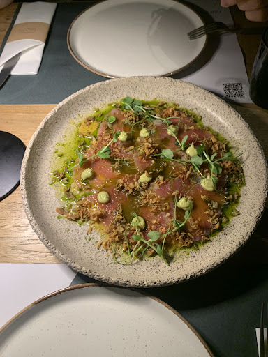 Read moreIncredible food, amazing service, and a creative menu cooked with love. We came to Pefkos for 6 days and made a point of having dinner here twice. Best tuna carpaccio we’ve ever had, light citrus-y flavours garnished with carefully piped avocado cream (I could have eaten a bowl of the avocado cream alone it was unreal). We both opted for the Veal main— the veal truly melts in your mouth and is garnished with delicious marinated okra (who knew I liked okra?). After the meal, we ordered another tuna carpaccio starter for dessert.. we just couldn’t get enough. The second visit, we decided to mix it up and try more menu items— went for the Octopus starter (stunningly authentic dish) and Lamb papardelle (ultimate comfort food) and the Sea Bream— both incredible. Highly recommended for anyone on holiday looking to treat themselves. The atmosphere is like being in an enchanted fairy tale garden. The owner came by to say hello after our meal, he’s a young innovative culinary artist who’s constantly challenging himself to make complex dishes with simple ingredients and it’s clear he’s entirely in his element. We took so many pictures of the tuna carpaccio and have since embarked on a journey to recreate it at home. HIGHLY recommended. Wine lovers— try...