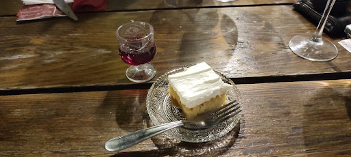 Read moreSo good! This place is filled with passion, love and pride. A little outside of the main attraction, in a residential area, in an adorable multi-story house, filled with character. The inside is decorated with such elegance and love. We ate among the nesake, " 4 Rosie's" or 4 pomegranate trees in the "back yard", which was less formal, but also decorated, with attention paid to every detail. it was so clean, even though not was out side. I was wearing a brand new stark white linen outfit, and this outside patio could probably pass a white glove test! There were chicken nuggets,fries for kids to eat, and sweet, friendly kitties ("Charlie" the cat, a fluffy black and white, and his mom a gray and white - they did not beg or intrude, but charlie did come when called, and stayed nearby) for the kids,.and lots of unbelievably yummy authentic, Greek dishes, made by the matriarch of the family and her son, and served by other lovely progeny. They serve a terracotta "pot" of a baked noodle dish that consists of eggplant, red sauce with meat and bechamel that was divine! There is a salad with prosciutto (cooked to a delicate, delicious crisp) that is incredible. We had something like a meatball in a sauce that was delectable. There is a plate of fried veggie patties that are incredible - also Tates great topped with an order of tzatziki. There is a plate of something that LOOKS like mini tamales that is note worthy. The grilled bread basket, comes with a fuschia garlic spread that is so tasty. The actual garlic rolls are incredible. Then, to top it all off, they serve an unbelievably delicious square of homemade marble-frosted cake, with a tiny cordial glass of a homemade rich, deep red, sweet drink made by the matriarch of the family from a variety of geranium. I think the drink was alcoholic because they did not serve it to the teenagers or youngsters in our family. The daughter brought us a leaf of the plant - the leaf smelled so lovely. ...