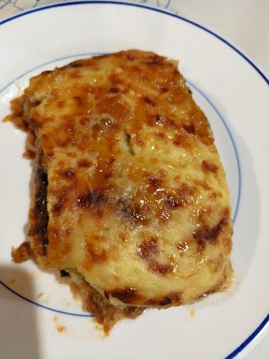 Read moreSiamo stati a cena in questo locale sito in una viuzza laterale del centro di Archangelos, di solito andiamo dal limitrofo locale di Manolis Mavrios, specializzato in mega porzioni di genuina carne alla griglia con insalatone, tzatziki e patatine, ma quella sera avevamo piu voglia dei classici piatti cucinati greci (i quali da Mavrios vanno usualmente ordinati il giorno prima e comunque non ci sembrano essere i piatti "forti" del locale...) e abbiamo scelto di venire qui, in quanto locale di vecchia tradizione come Mavrios, ma dove non avevamo mai avuto occasione di venire. Oltretutto quella sera di ottobre era un po' ventilato e quindi ci è sembrato meglio stare al tavolo della loro saletta anziché ai tavoli all'aperto di Mavrios. Saletta semplice ma accogliente, con una lavagna che esponeva i piatti consigliati del giorno, cosi come accogliente la famiglia che gestisce il locale. Abbiamo preso 2 mousaka' (visto il gran bene che se ne diceva in rete dai precedenti recensori), soutzoukakia, stifado (serviti con riso e patatine fritte) e come antipasto tzatziki e skordalia con il pita bread...dobbiamo dire che la mousaka, seppur piu che accettabile, non ci è parsa cosi valida come reclamizzato in rete mentre migliori ci sono parse soprattutto la soutzoukakia e anche lo stifado. Non indimenticabile lo tzatziki, ottima la skordalia'. Buono il vino bianco sfuso della casa. In due coppie abbiamo speso 57€, direi in conclusione buon rapporto qualità prezzo, ma un netto gradino sotto le alte aspettative suscitate dalla loro tradizione e da quanto letto in rete...ma ovviamente de gustibus non...