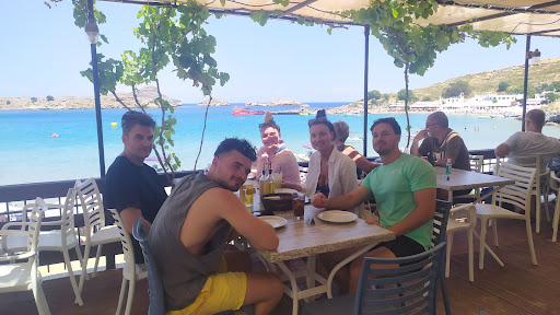 After reading a bunch of these reviews, it's apparent that a lot of people giving bad reviews are reviewing the wrong place! Ammos does not charge 20 or 40 euros for sunbeds, but it is wedged in between two other places that do. We ate here almost every day for lunch for a week, and cant really comment on other dishes than the souvlaki and Greek salad, because that was our lunch favorite:) plus fresh orange juice and a beer, lol. The Greek salad was the best and biggest we had in Lindos, served exactly as a Greek salad should. The souvlaki was a huge skewer of perfectly grilled chicken, lots of fries, pitta bread and some veggies. Some of the staff don't speak great English, that doesn't make them rude.