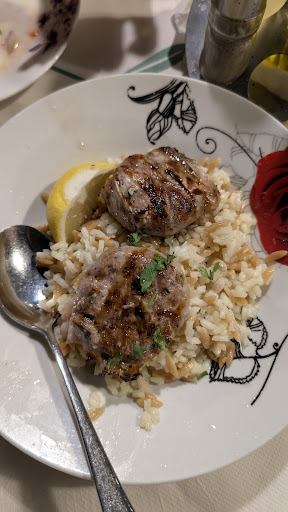 Now, the food! The horiatiki salad was solid. The sheftalia was actually really delicious and the rice it came with was cool. Honestly, when the food came, most of it was decent and delicious.