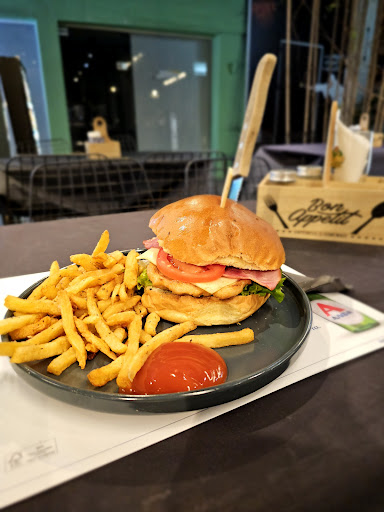 I ordered a chicken burger for 17€, and at that price, I expected something premium. Instead, I was immediately disappointed. The buns were dry and stale, the chicken fillet was fine but completely unremarkable, the side sauce was nothing more than basic ketchup, and the rest of the ingredients were equally flavorless. The only decent thing on the plate were the French fries—well-seasoned, full of oregano, and genuinely tasty.