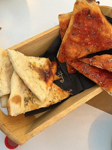We had two vegan pizzas, two Mythos bottles, focaccia mix and chips. Everything was absolutely incredible. Our daughter is such a fruit eater, so isn’t into chips and things like that - but she ate these chips.
