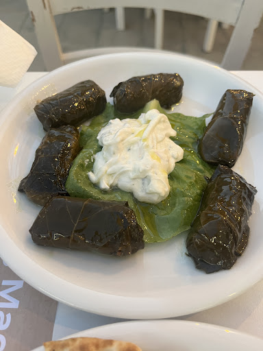 We began with the 'mixed selection,' which included tzatziki, spiced feta whip, hummus, and their unique take on baba ganoush, all accompanied by their own garlic pita. Every item was perfectly seasoned and tasted delicious. We also tried the deep-fried kasseri cheese and the stuffed vine leaves.