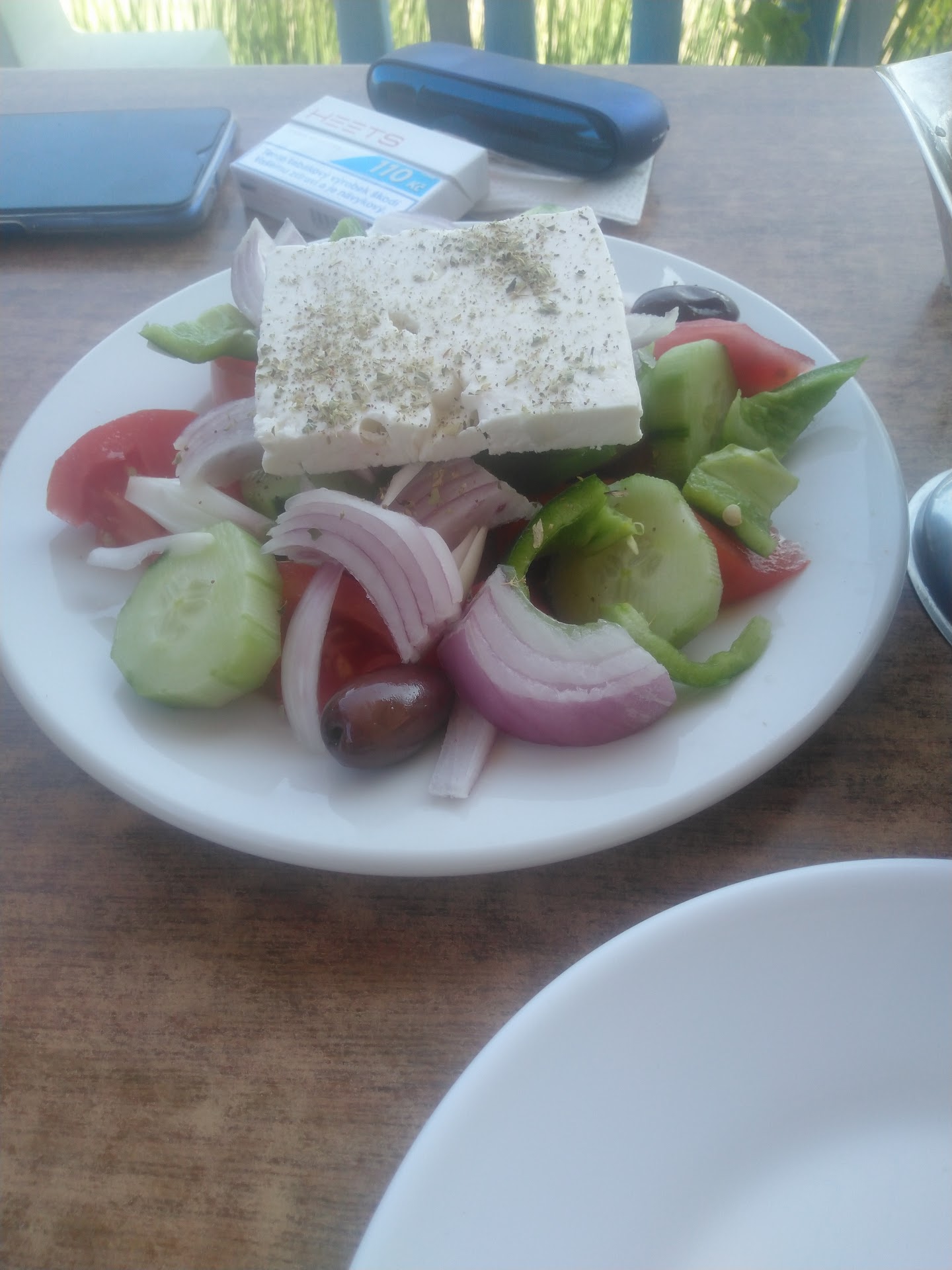 I was surprised at first by the quality of the ingredients of this beach-side restaurant - the owner confirmed that he doesn't source the ingredients from supermarkets but trusted sources, good butchers etc. The second bonus is that the meats, calamari etc are always freshly made that morning by his mother and it really shows. The third, they're cooked with care, retaining succulence and not overcooked. The fries won't beat the Belgian method however the rice and orzo is well put together. I skipped eating fried calamari in town in the evening knowing that theirs' is so much more competent. Always a warm welcome, in a word, bliss. Busy at lunchtime, best to go early or...