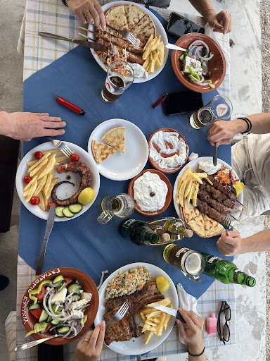 It's a really local restaurant, with many surfer families coming every year, and some almost every day, if we understood correctly. Family owned and operated restaurant with the mother cooking with one of the sons and the other son working as a waiter, very nice and open. We were surprised that he sits down at your table to order, clarifies any questions and takes his time with you. Also very open in saying what is fresh and what is frozen, but from a good quality company. We had Tzatsiki, great, with a stronger garlic taste. Afterwards we had the fried vegetables pastry with chickpeas, onion, tomato inside, and wad extremely good. Feta saganaki afterwards to melt in your mouth, and we finished off with the homemade meatballs, with a fine rice and fries. Everything we ordered was homemade, great, came in a great timing one after the other. The Greek white wine was great, Retima if we recall correctly. The prices were very low and the portions were very big! If we are ever back to Rhodes, we will be back at...