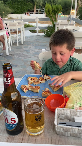 signed up for the well promoted greek bbq night..was really looking forward to some speciality meat and entertainment with views to die for. this is what we got. a table with legs too short to fit our seats under, which then meant being uncomfortable as we tried to force ourselves under the table or getting nudged every time a waiter had to run past. a bowl of basic salad. 4 quarter slices of pita with dip. followed by a platter of the driest, most flavourless and cheapest meat you can buy. we didnt know what ro expect but I asked and was told a variety of meats...I asked if my daughter could get mostly chicken as she has sensory food issues. the platter was dumped in front of us with fries, 2 pork sausages, 2 pork loins and 2 tiny lamb chops along with 2 very thin chicken legs. as a result my daughter got about 3 mouthfuls of bbq and I had to try and wash my share down with the wine I waited 10 minutes for. I honestly expected something special. more fool me this is a pure tourist trap...calls itself a cocktail bar but could only whip up 2 virgin cocktails and their list had about 10 on it in total.. they didn't offer us sauces or care when we sat without drinks. when we decided to cut our losses I realised id just paid 81 euros for the worst meal of our holiday. they looked at us like idiots when we asked for the bill but to be honest after that so called greek bbq I wasnt willing to give them another cent of my cash. had better bbqs in the rain. id say the entertainment was good and it was, if you're happy...