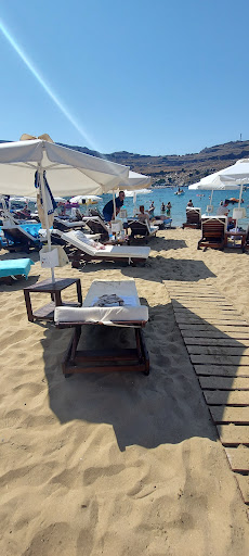 The beach worker acted badly. He intercepted me near the sunbeds of a nearby cafe, and took me to his unit (this became clear a little later). Also, he gave me a bad seat literally on the aisle (1st photo), staying in such a place is not very relaxing. He motivated this place by the fact that only this sunbed is available in a single quantity, the rest come in 2, although there were many free sunbeds. Also, there were some clothes hanging on the umbrella (was told that a person who took the second sunbed left his clothes there and that sould be fine by me). Payment in cash 7.5 euros, no receipt. I do not recommend this place because of the consumer attitude towards Lindos guests, he only was interested in money, not even a bit in my comfort.