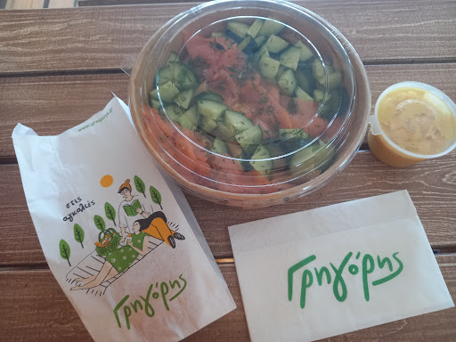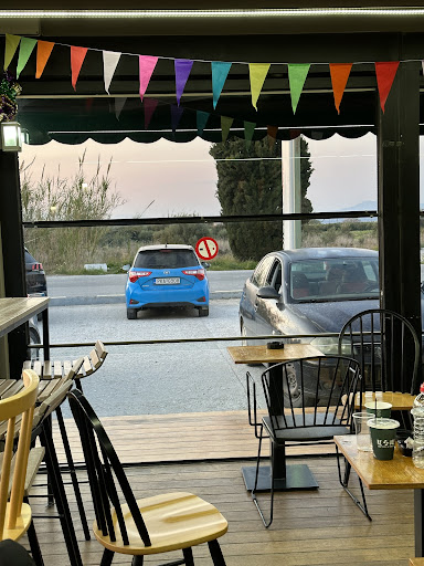 Stopped off for a soya latte & coconut latte and a cheeky praline (Nutella) croissant. The server was very patient in understanding exactly how I like my coffee and I have to admit it was the best weak soya latte I’ve ever had. The croissant was soooo good it was gone in moments! My wife likes a regular strength latte and for her second cup paid for an additional shot which she then preferred. They told me their latte comes with one shot and the additional shot made the coffee €3.60 with coconut milk. Still cheaper than in the UK. This cafe is next to the petrol station so the atmosphere was ok. Several groups of older Greek men sat chatting with their drinks. Air conditioning so nice and cool. You’ll need a car...