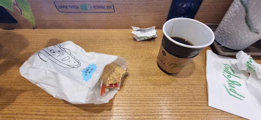 Here you can get savory pastries and coffee at a very low price. They have a few vegan options like cheese pie, mushroom pie, spinach pie and doughnut, which were delicious! They also have a few different kinds of plant based milks. The place is air conditioned and spacious. I and my partner are here 3 times and only paid like €7 per person each time. It's very good value...