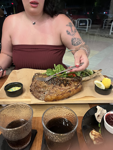 Read moreMe and my girlfriend came here for dinner last night, we ordered the halloumi with rocket and balsamic and also their cheese balls for starters, both were amazing and fresh. Then we also both ordered their premium tomahawk steak which was cooked to perfection (medium rare, & rare). The steak was MASSIVE, way bigger than anything we’ve had in the UK! We definitely didn’t need starters after seeing the size of it! The steak was juicy, tender and also had a lovely charring on the outside. The chef and waiter were lovely and very attentive to make sure everything was ok and it was perfect. 10/10 recommend to anyone in Falaraki looking for a big juicy...