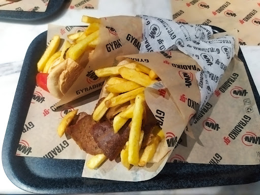 Popped in for a take away Gyro for 2. Sadly the pork in the gyro were great big chunks which made eating the meal difficult. Was not delicately flavoured. Was expecting to be fine slices. And the side order of chips were pre cooked, therefore cold and dry and oddly shaped to make the packet fuller. So needless to say won't be going there again. Oh the packet of chips was €4. I think much...