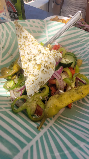 The Greek salad was quite disappointing. The tomatoes were flavorless, and the white cheese was just as bland. Very odd. Maybe that’s how it is here, though this was my first meal in Rhodes, so I’m not sure.