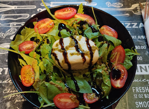 Food: Mozzarella salad. First bite was nice with the balsamic vinegar and some pesto, but let's face it: Rocket, Mozzarella, Cherry Tomatoes (mini plum tomatoes really), Balsamic Vinegar, fresh basil (i found none, tasted none and really would have liked to have some), olive oil (did not taste any and none was visible) and green pesto (too little) is a mild combo. I had to add salt and pepper which were provided to The table though. 0.5L beer was cold. Not a place for salads. They identify as a pizza place, so. Maybe next time some pizza, If i choose to come back. The La Ricetta salad was ok, but also could be better. Almost the same as ceasar salad. Also the portions could be bigger. 2-/5