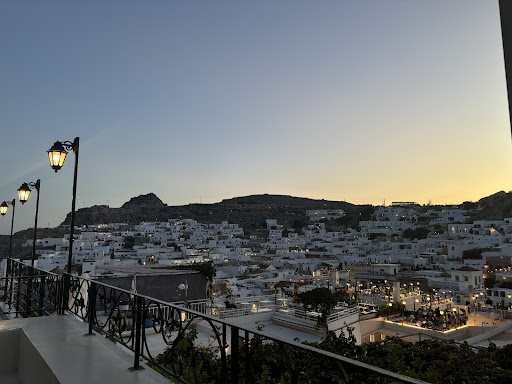 A little hard to find on Google maps but really worth it - itās actually the tallest roof terrace in Lindos (dispute others claiming so) and you are right under the acropolis. Head towards Christof and then past Dionysis, look out for Ambrosia and follow down, turn left and youāll see the Captains House Bar, follow round and up the steps past Caesar MEZE and Lassu is on the right.