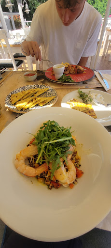 Friendly, attentive but quiet service with amazing views! A great spot! We stopped for lunch today, and the hello was welcoming and we were directed to the top floor.. It looked quiet and I thought oops.. However, on getting to the top floor it was busy and serene. The view from there was fabulous! The servers were friendly and not pushy at all. When we said we wanted lunch too, they were very ooh OK! Excellent! Never expecting, just going with what YOU wanted. Time was given to the perusal of the menu as drinks arrived. I had a good sized plate of couscous salad with Prawns, husband the ceasar salad and our son had the chicken souvalaki, which we asked for no sauce (he's 16 so no chance he'd try it!). The server was fine with this and with a smile said "would you like ketchup?". When we finished, there was no rush made for us to give up our prime view spot at all. So much so I had to ask them for the bill rather than it being placed on the table. We were told by the servers, you pay downstairs and just say your table (11 for us), and they left us sitting at our table if we wanted, which we did finishing drinks. Value wise - fair price for 3 main meals, drinks and bread at €71 Thoroughly recommend for great food, great service and...