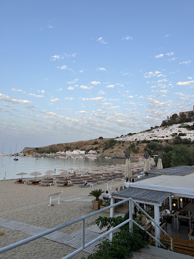 Read moreWe came here after doing the pleasant 2-hour flat walk from Lindos bay to Kleoboulos's tomb. Nice walk, and Nefeli's looked cheap and cheerful. My daughter loved her bacon and cheese baguette with a handful of chips (she wants to come back!) We had a swim and a late light lunch costing @ 44 Euros total plus 4E tip, as we'd been there for 3 hours. Service was the usual Greek speed but food was nice and prices middling. One Cocktail = 6E, a big beer, two cokes and one ouzo lemonade, and half a litre of retsina, nice fresh Greek salad @7Euros, a very nice 4 dips n' pita platter @ 4.90. We reckon that we liked it despite what other reviewers say, we'd be happy to go back, as it's bang on the beach. There are other restaurant/bars very near if you prefer shopping around, so...