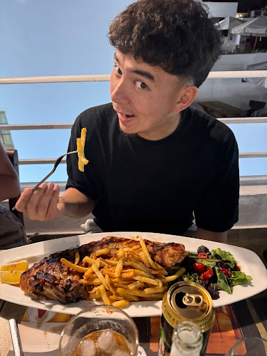 Read moreIf you're looking for a nice relaxed place that feels a little bit special olympia is the place! The view is breath taking and as the sun goes down it gets even more incredible. The restaurant too was very fresh and had the classic authentic Greek decor. All the staff are lovely. They made such a lovely experience from the moment we were greeted at the door by Takis to the last sip of our beers. The waiters and waitresses are very knowledgeable about food and recommended both our dishes for us. The food is of course delicious. We went for steak and chicken with blue cheese which I highly recommend. The feta in phillo pastry with sesame seeds and honey is the best I've had on the island! The atmosphere in the restaurant was really lovely too and we thoroughly enjoyed...
