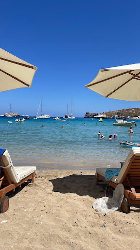 We ended up at Palestra because we luckily found a parking spot right in front. Two sunbeds and an umbrella cost €30. The sunbeds were comfortable, but as someone who visits Greece regularly, I find the recent price hikes quite extreme—it’s starting to feel like Turkey’s inflation! Overall, parking and beach setup felt overpriced.