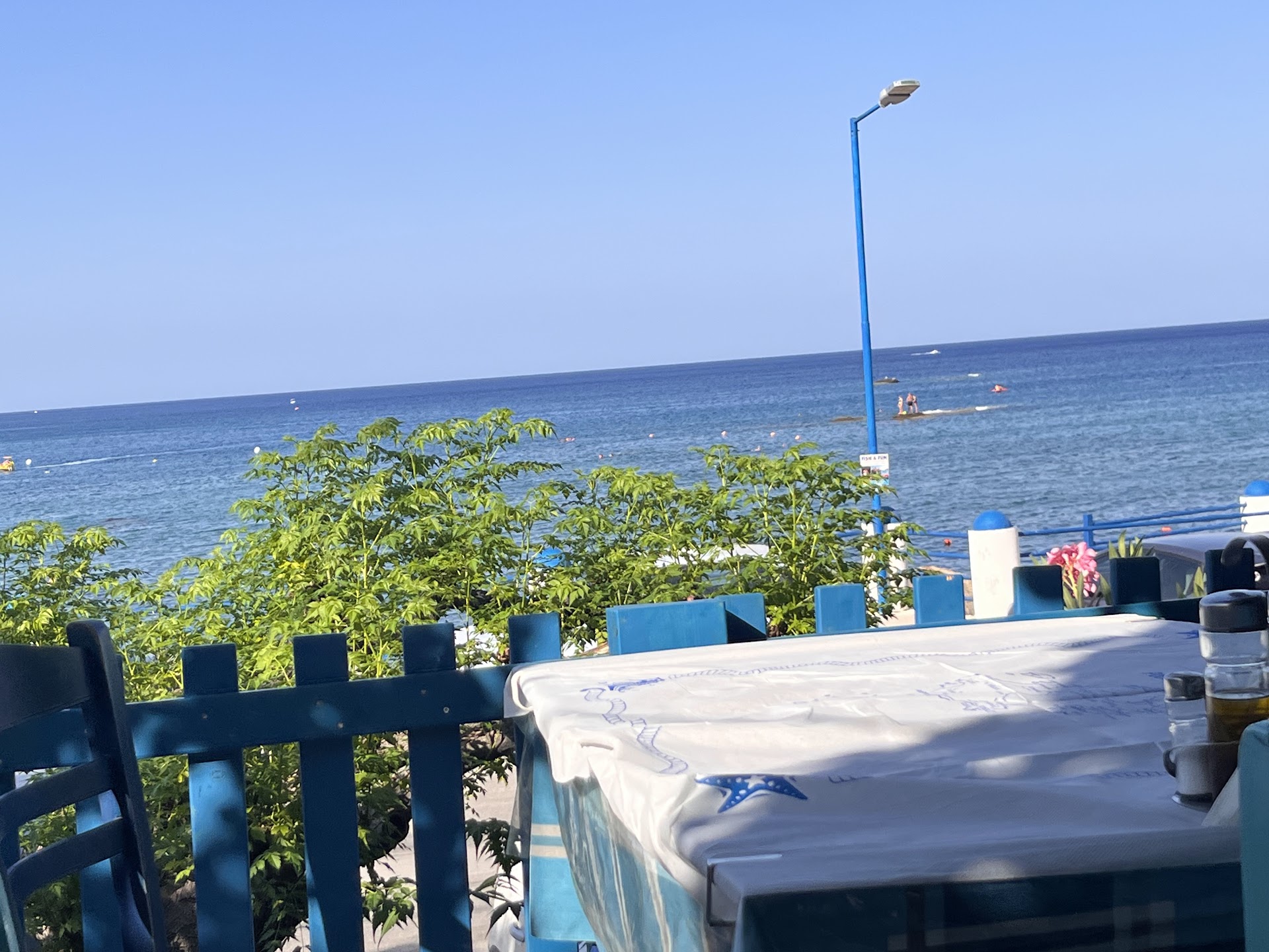 Read moreDuring our whole stay we were searching for an insider tip on the whole island and we're pretty sure we found it: though it's not so secretive and there are some tourists, it's still not crowded and pretty quiet because it's on the end of the street. The food was amazing! Super fresh fish, the vegetarian sides were definitely the best we had on this island (eggplant/auberginesalad for goddesses) and the portions are the biggest we've got so far for the money. We shared a 1.6 kg seabass with three sides (Auberginesalad grilled vegetables and a varied form of a Greek salad) and payed 110 Euros.The drinks were on the house. Absolute fair price. There are many options for vegetarians (and I mean without fish of course, maybe some of them are even vegan) that are sides, but so tasty if you have some of them it's definitely a whole meal. AThis is also the part which makes the food taste even sweeter: the service and the people who obviously are taking part in any kind of work in the restaurant are super nice and welcoming. As an open queer couple we felt warmly welcome the first time on this trip. Also it's just a beautiful location with view on the beach and mountains. We're still blown away. Our highest...