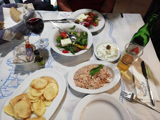 This restaurant has a very nice view over the beach, specially att Night. We ordered squid in its ink. Its the first time i hade that so had nothing to compar to, but the squid was fresh and it tasted a bit like schrimps. We also ordered a grilled calimare that could have gotten some moore time in the grill. Then we ordered some grilled chicken that was really really tasty. Overall it was very nice experience, and the service was very good and they also they gave us some shots on the...