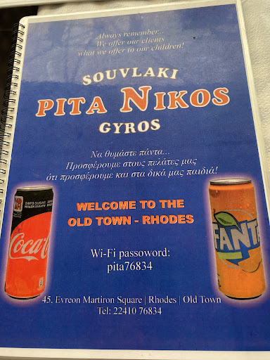 Read moreThe food is amazing! Me and my partner don’t eat so much on holidays so we sacrifice hotel breakfast for a decent lunch that will hold us till dinner time. We found that a gyros wrap is the perfect amount for us. nikos gyros and kebab was €4.50 each! An amazing find for somewhere to eat in old town Rhodes because most are tourist restaurants with London prices. Their food is freshly made, homemade recipes to the gyros and not frozen like most of the vendors in the area! The kebab was the most moist and flavourful were ever had! And we’ve eaten many of them around the world, never thought we’d find a treasure in Greece Rhodes for the best. They won awards for their food and I’m not actually suprised. It doesn’t look glamorous in a paper cone but trust me, it’s worth it. We also got the fresh orange juice and coffee frappe. Everything for €17 for 2 people! Both really nice and fresh! Thank you for being so friendly and giving us a great...