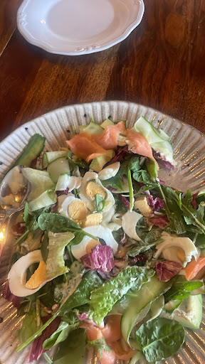 Read moreI was going to this restaurant alone as I am on solo vacation. And at first they were nice, but after I while I felt very uncomfortable there. They didn’t look at me when I got my food, which by the way was not worth the money. I ordered the salmon salad which was 90% baby leaves. Anyways, they walked past me and didn’t look at me all the time, so I felt very much in the way… Then one of the waiters snatched the second chair at my table without looking at me or asking me… I did not feel welcome or seen. I felt like an idiot, and that made me not finish my food because I just wanted to pay and get out of there.