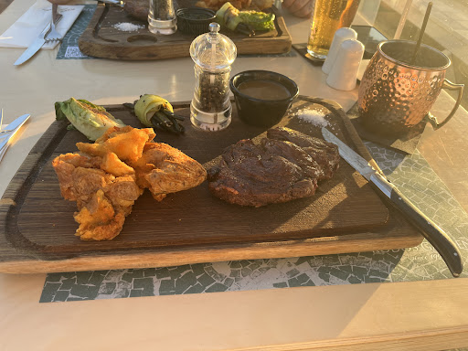 Read moreLoved eating here. Very relaxed atmosphere, employees knew what they were doing and they did their jobs well. Amazing designs in the restaurant, I liked the wall which featured John Lennon on it, I thought that was a nice touch and the reggae covers of popular songs in the background was a nice touch too. The food itself didn’t have nuts in it, which was quite good and only a few items (e.g. ones with pistachios) had nuts in them. Now let’s get onto the food. I had some chicken wings for my starters which were very nice, admittedly I think the amount of sesame seeds on it was a bit much but it didn’t spoil the chicken for me. Later on I had a burger and fries which tasted absolutely amazing. It was rather large though and I wasn’t able to finish it all, but still, absolutely delightful nonetheless. We were so full we couldn’t even picture getting a desert, though if we did then we’d like to think whatever we got would’ve tasted amazing. Anyways, great food, amazing staff, very relaxed atmosphere and superb table service. Definitely one of the highlights from our stay in Rhodes, Greece and without a doubt, the best meal we had...