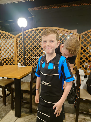 It was our last night staying just outside Lardos and we were SO sorry to just stumbled across Roulas. We really, really wished we had found it earlier. It was the best meal we had in our 2 week stay. From start to finish it was perfect. Every single member of staff who served us was so, so nice. And the place was almost completely full on a Tuesday night. We ordered a litre of medium white wine but the waiter brought us a glass to try and we were so glad he did as it was a little sweet for our taste so he changed it to dry white for us.THANK YOU. As the kids were ordering the pizzas the lady server went to the kitchen to show us how big their pizza pans were as she said she didn't want us to order too much. We thought that was such a nice touch because plenty of other places would've happily given us three pizzas and charged us. We had such a lovely meal and the lady brought the kids a HUGE slice of mud pie to share- totally free of charge. And one of our boys even cleared the table all the way to the kitchen when one of the lovely young waiters gave him his apron!!!! And the other staff offered him a job when he's older! Our 3 kids voted it the very best night of the whole...